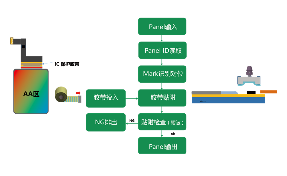 设备功能:应用于0.2-2mm柔性OLED产品上的IC保护胶带贴附